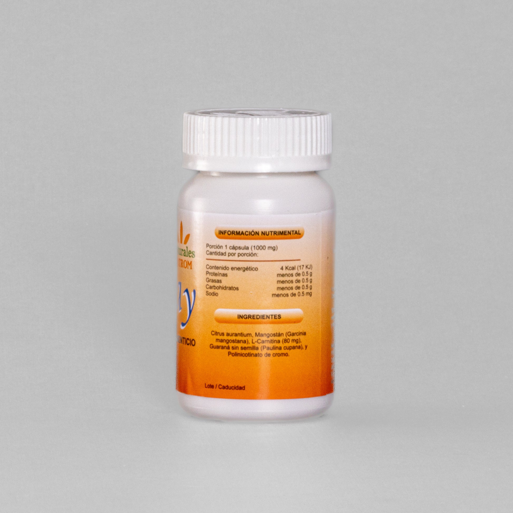 Ingredientes: Citrus aurantium, Mangostán (Garcinia mangostana), L-Carnitina (80 mg), Guaraná sin semilla (Paulina cupana) y Polinicotinato de cromo.