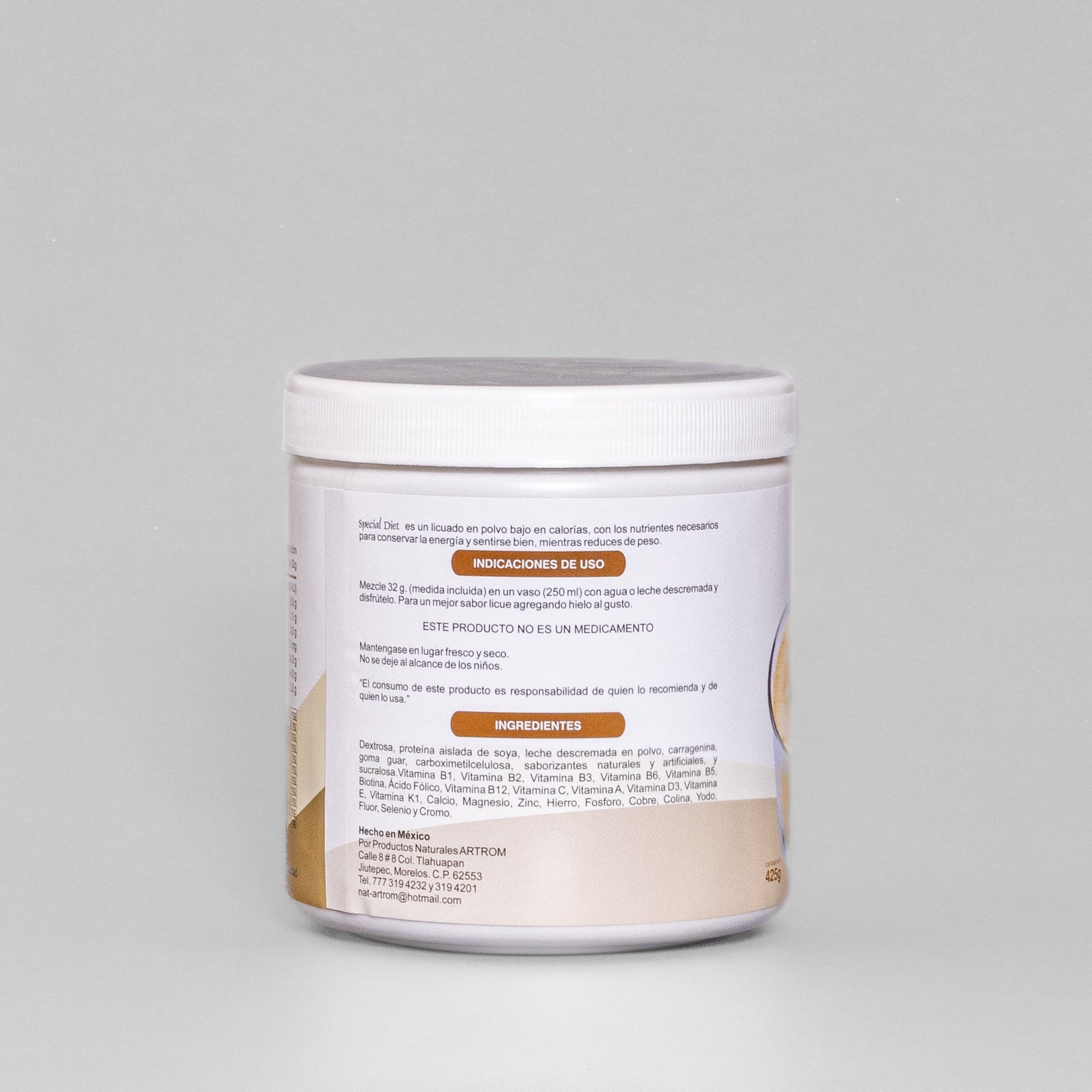Modo de uso: Mezclar una medida (30g) de Special Diet incluida en el envase, en un vaso (250 ml) con agua o leche descremada.